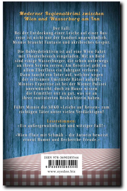 Die Hobbydetektivin ist auf eine Wien-Fahrt mit Theaterbesuch eingeladen. Mit an Bord sind einige Wasserburger, die schon unterwegs an ihren Nerven zerren. Am Reiseziel geht zu allem Überfluss ein Fahrgast verloren.